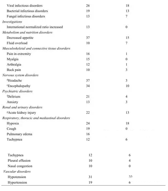 調(diào)查:血肌酐升高(7%),活化部分凝血活酶時間延長(6%)