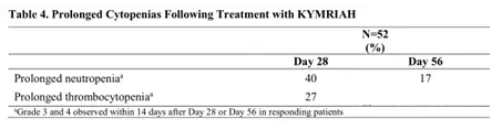 Table 4. Prolonged Cytopenias FollowingTreatment with KYMRIAH
