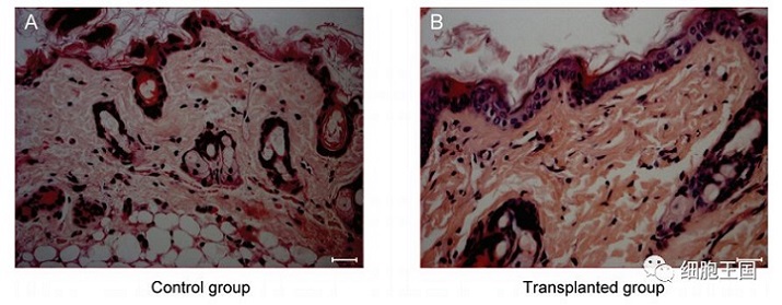 移植后對(duì)照組和移植組皮膚組織學(xué)對(duì)比